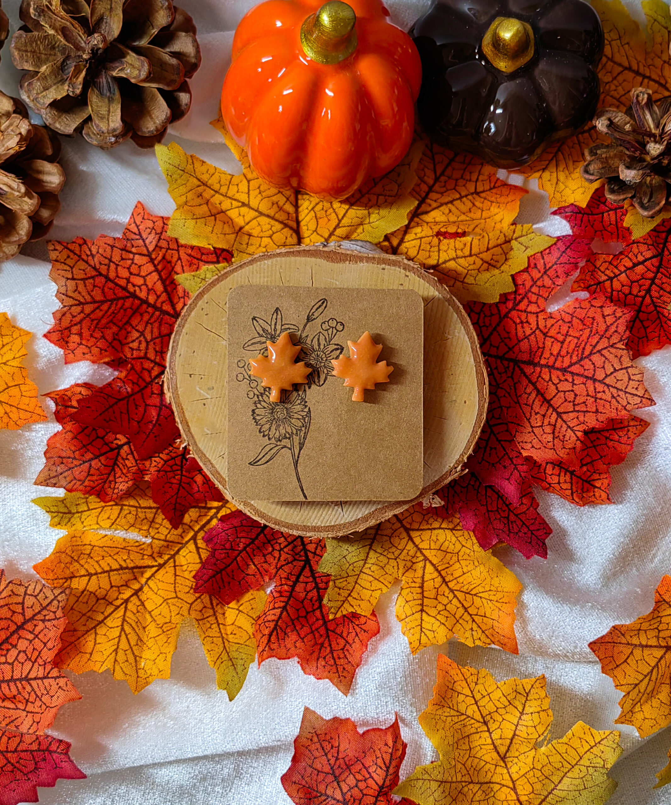 Kolczyki w kształcie listków stanowią doskonałą interpretację natury w modnej biżuterii. Ciepły pomarańczowy kolor nawiązuje do jesiennej palety barw, idealnie pasując do wielu stylizacji, zarówno codziennych, jak i bardziej eleganckich. To idealny wybór dla osób, które pragną dodać swojej biżuterii nieco artystycznego akcentu i wprowadzić do swojego looku element natury.