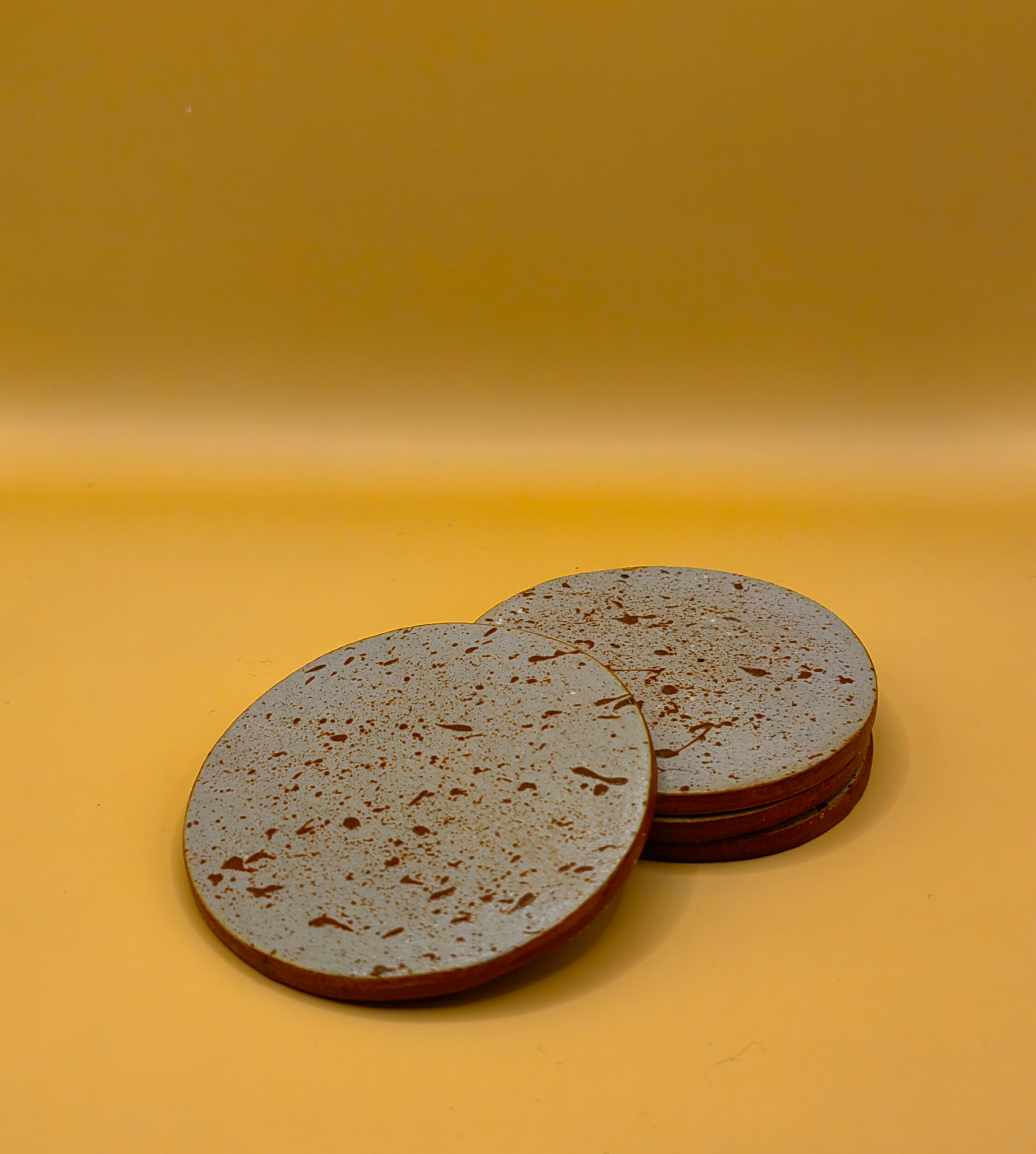 Ręcznie robione gliniane podstawki pod kubki i szklanki, ozdobione unikalnym, nakrapianym brązowym wzorem. Każda podstawka jest starannie wykonana, zapewniając trwałość i elegancki wygląd. Doskonałe do ochrony powierzchni przed ciepłem i wilgocią, a jednocześnie wprowadzają do wnętrza ciepły, naturalny akcent. Idealny wybór dla miłośników rękodzieła.