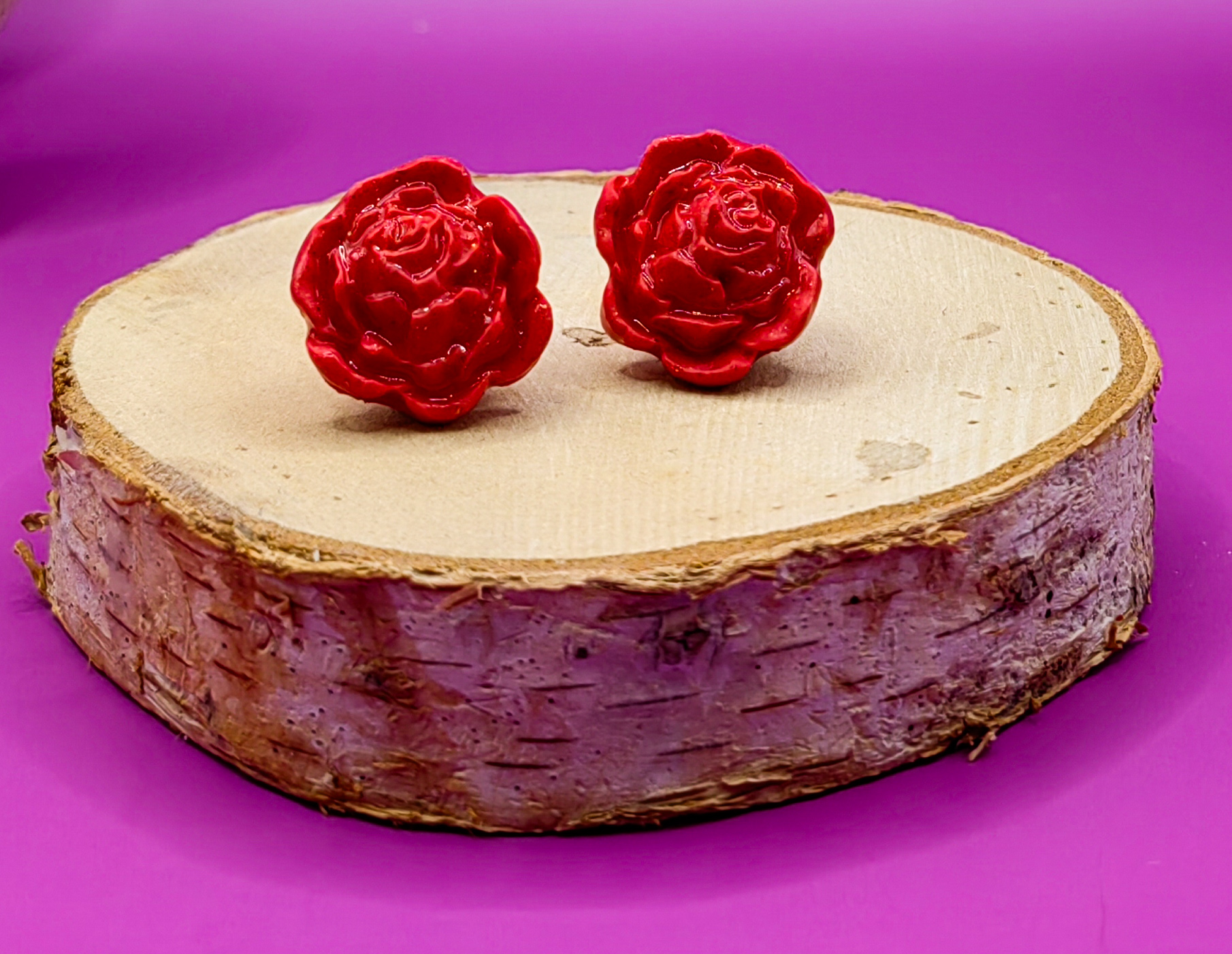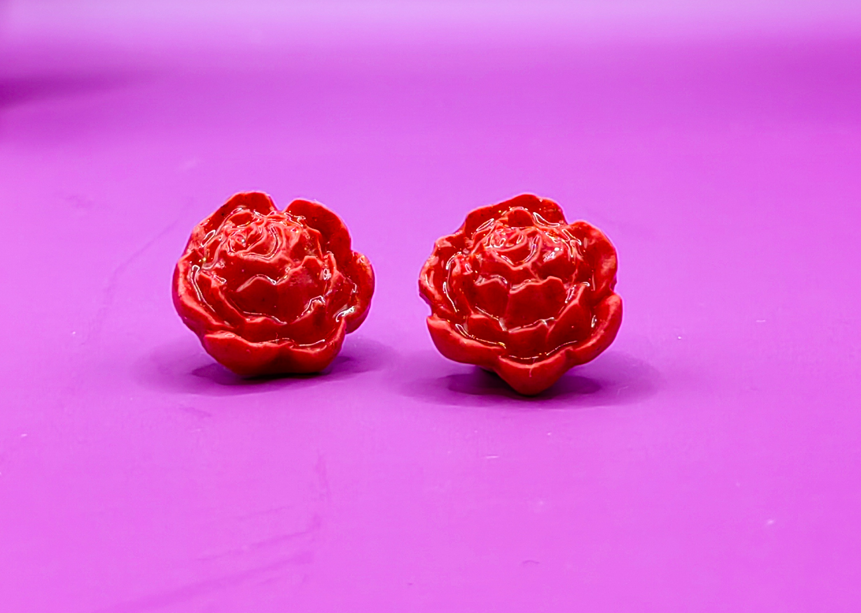 – design: kolczyki w kształcie róży w czerwonym kolorze,